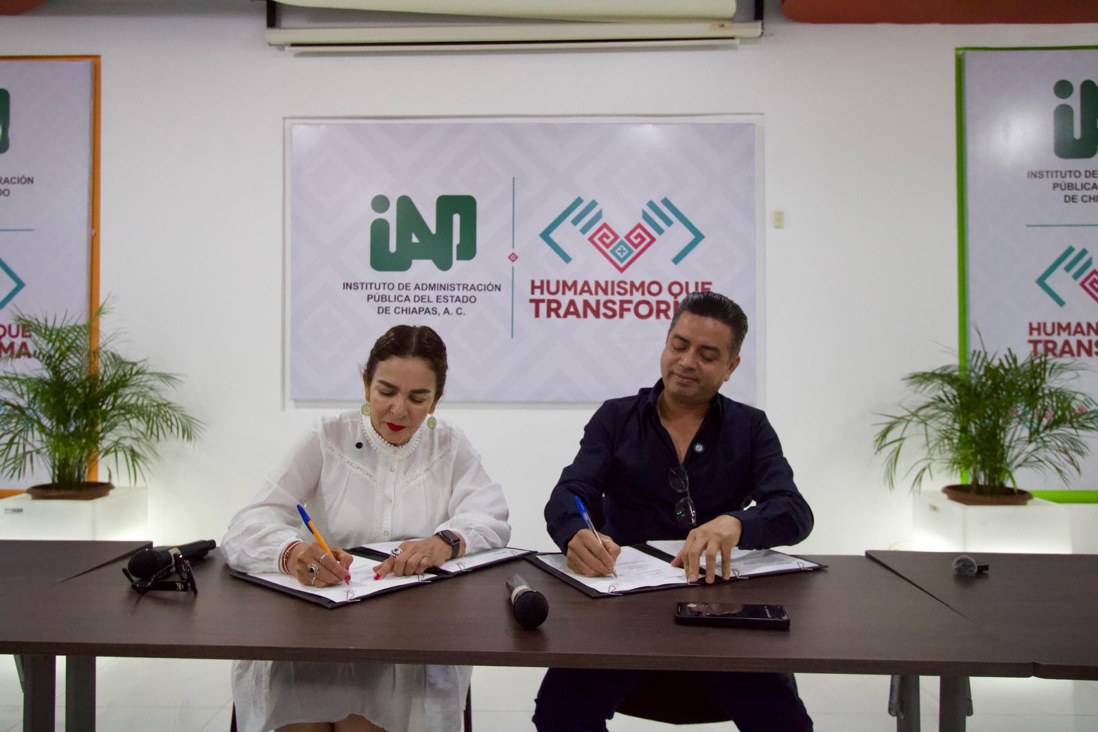 *El convenio fue suscrito por la presidenta del Consejo Directivo del Instituto de Administración Pública del Estado de Chiapas, Mtra. Lysette Raquel Lameiro Camacho, y el director general del Instituto de Seguridad Social de los Trabajadores del Estado de Chiapas (ISSTECH), Dr. Armando Barrios Fierro.