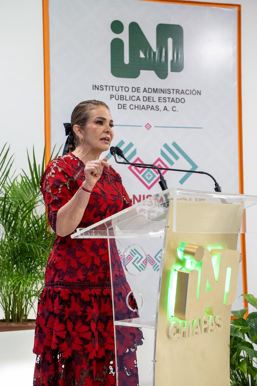 En su intervención, la titular del IAP Chiapas, felicitó y reconoció a los graduados, no solo como profesionales mejor preparados, sino como personas con experiencia, criterio y compromiso. Madurez que hoy es una fortaleza y también una responsabilidad; así mismo, destacó que lo aquí alcanzado es fundamento, para seguir construyendo con integridad responsabilidad y propósito, una sociedad que espera de los graduados decisiones informadas, ejercicio ético de su profesión y una contribución consciente al bien común.