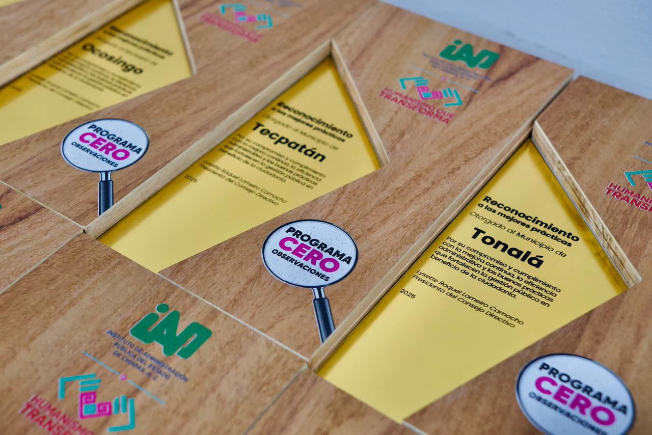 - IAP otorgó reconocimientos a los municipios de Arriaga, Berriozábal, Chilón, Comitán de Domínguez, Escuintla, Huehuetán, La Independencia, Ocosingo, Solosuchiapa, Tonalá, Tuzantán, Villa Comaltitlán y Tecpatán.