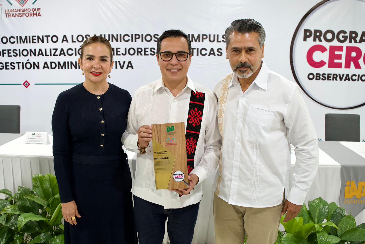 En su mensaje de bienvenida la presidenta del IAP Chiapas, expresó que los municipios que reciben reconocimientos por su participación y fortalecimiento de capacidades dentro del programa “Cero Observaciones” son: Arriaga, Alejandro Aquiles Patrinos Fernández; Berriozábal, C. Jorge Arturo Acero Gómez; Chilón, C. Mario Hernández Aguilar; Comitán de Domínguez, C. Mario Antonio Guillen Domínguez; Escuintla, C. Carlos González Moreno; Huehuetán, C. Sixto López Pérez; La Independencia, C. Jhony Sebastián López López; Ocosingo, C. Manuela Angélica Méndez Cruz; Solosuchiapa, C. Fernando Aparicio Gómez; Tonalá, C. Manuel de Jesús Narcia Coutiño; Tuzantán, C. Grissel Vázquez Zambrano; Villa Comaltitlán, C. Gerardo Pérez Gómez; Tecpatán, C. Cesar Edgar Marín Gómez.