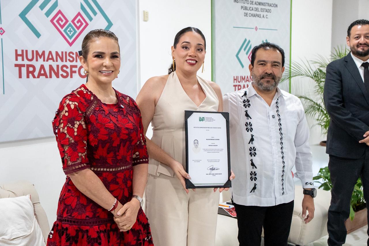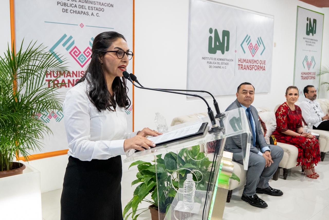 En su intervención, la titular del IAP Chiapas, felicitó y reconoció a los graduados, no solo como profesionales mejor preparados, sino como personas con experiencia, criterio y compromiso. Madurez que hoy es una fortaleza y también una responsabilidad; así mismo, destacó que lo aquí alcanzado es fundamento, para seguir construyendo con integridad responsabilidad y propósito, una sociedad que espera de los graduados decisiones informadas, ejercicio ético de su profesión y una contribución consciente al bien común.